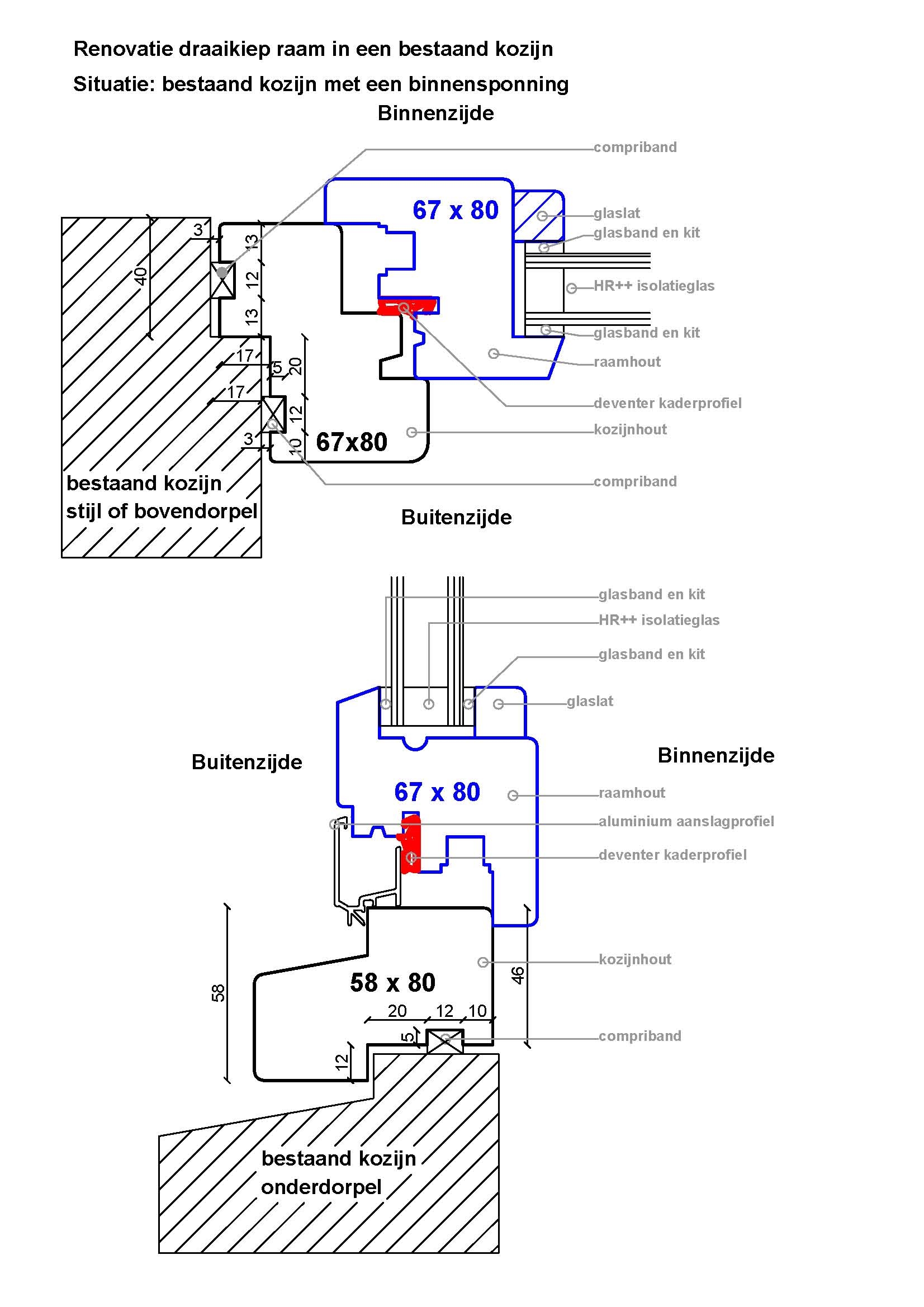 - kozijnhout 67x80 / onderdorpel 56x80 mm